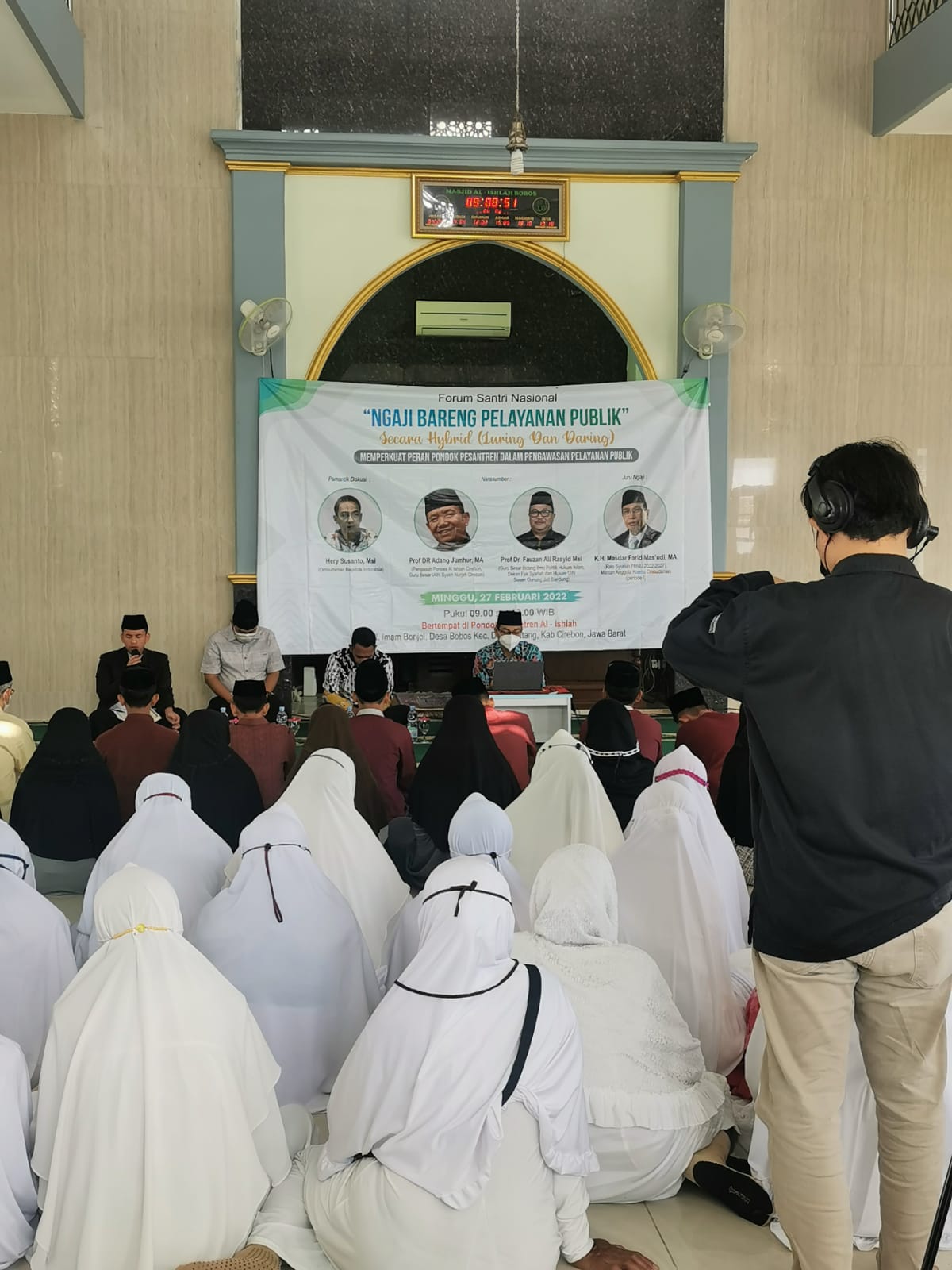 CIREBON – Forum Santri Nasional (FSN) gelar Ngaji Bareng Kebijakan Publik dengan mengusung topik “Memperkuat Peran Serta Pondok Pesantren Dalam Pengawasan Pelayanan Publik” secara hybird di Pondok Pesantren Al-Ishlah Kabupaten Cirebon, Jawa Barat, Minggu (27/02/2022).
