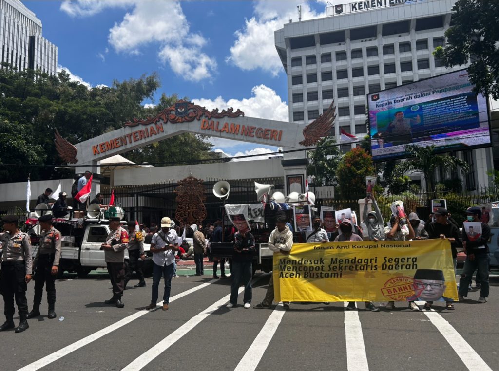 Dalam aksi demo tersebut kordinator lapangan akril meminta kemendagri mengevaluasi kinerja Sekretaris Daerah Aceh, dan KPK segera panggil dan perikasa karena patut diduga melakukan manipulasi dan praktek KKN.