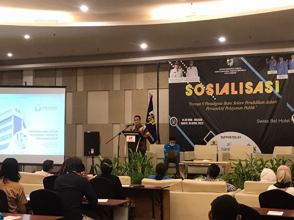 Cirebon,-Anggota Ombudsman Republik Indonesia (ORI) Hery Susanto menghadiri Sosialisasi Format 9 Paradigma Baru Sektor Pendidikan dalam Perspektif Pelayanan Publik, Sabtu (16/4/2022), di Swiss-Belhotel kota Cirebon yang diadakan oleh Komite Nasional Pemuda Indonesia (KNPI) kota Cirebon.