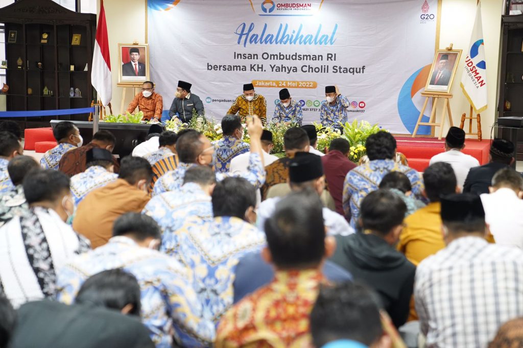 Jakarta – Ketua Umum Pengurus Besar Nahdlatul Ulama, K.H. Yahya Cholil Staquf atau dikenal dengan Gus Yahya hadir secara virtual dalam acara Halal Bihalal Ombudsman RI 1443 Hijriah, pada Selasa (24/5/2022). Pada kesempatan ini, Gus Yahya menyampaikan bahwa Ombudsman RI memiliki peran sentral dalam pengawasi penyelenggaraan pelayanan publik.