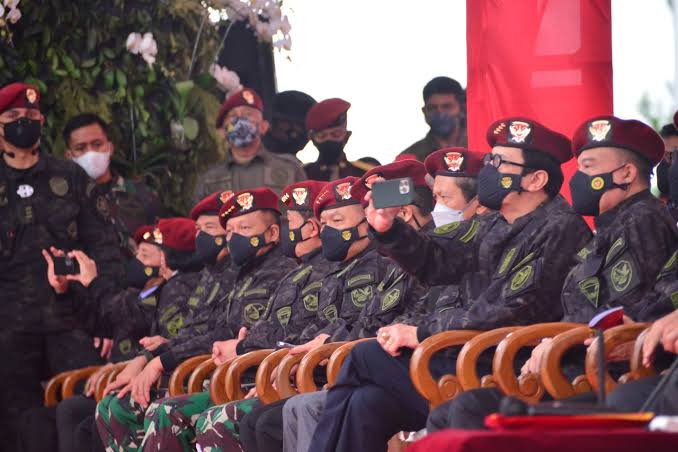 Panglima TNI Jenderal TNI Andika Perkasa, Gubernur Sekolah Tinggi Intelijen Negara (STIN) Laksamana Muda TNI Ivan Yulivan, dan Mantan Kepala BIN Jenderal TNI (purn) AM Hendropriyono.