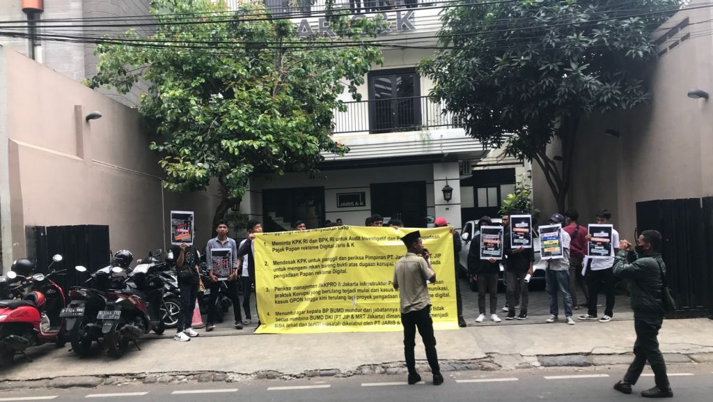 Selain itu mereka juga menuntut agar Manajemen JAKPRO dan Jakarta Infrastruktur Propertindo diperiksa atas dugaan praktek Korupsi yang berulang terjadi mulai dari kasus Menara Telekomunikasi, kasus GPON hingga kini terulang lagi proyek pengadaan papan reklame digital.