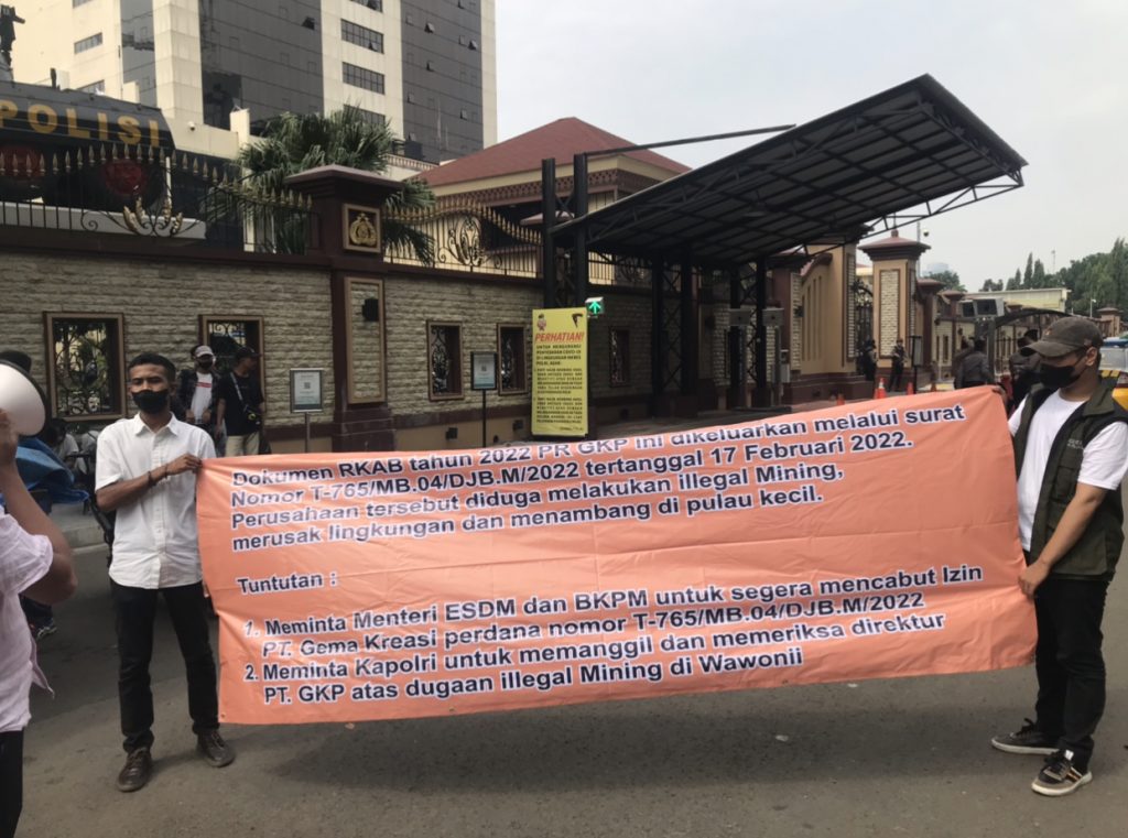 Mereka meminta Bareskrim Mabes Polri untuk bertindak tegas menindak, memanggil dan memeriksa pimpinanPT Gema Kreasi Perdana (GKP) karena diduga melakukan penambangan di pulau kecil Wawonii.