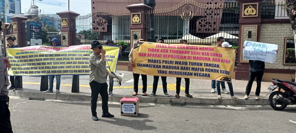 “Rokok ilegal ini jelas dan nyata, tapi kenapa tidak ada tindakan tegas dari Bea Cukai maupun Kepolisian. Hal ini menguatkan dugaan kami bahwa ada bekingan kuat dari oknum anggota Polda Jawa Timur terkait peredaran rokok ilegal ini. Kapolri harus turun tangan dan perintahkan Kapolda Jatim Toni Harmanto untuk berantas rokok ilegal di Madura,” tambahnya.