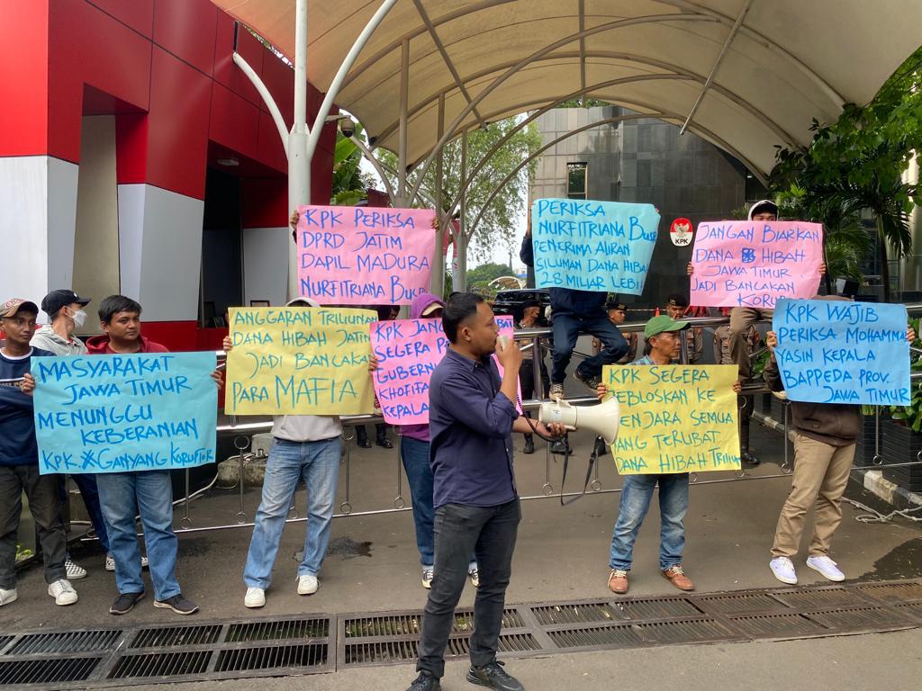 Jakarta – Komisi Pemberantasan Korupsi (KPK) diminta segera tersangkakan semua yang terlibat dalam kasus korupsi dana hibah Jawa Timur. Hal itu disampaikan oleh sekelompok pemuda yang mengatasnamakan Jatim Progress.