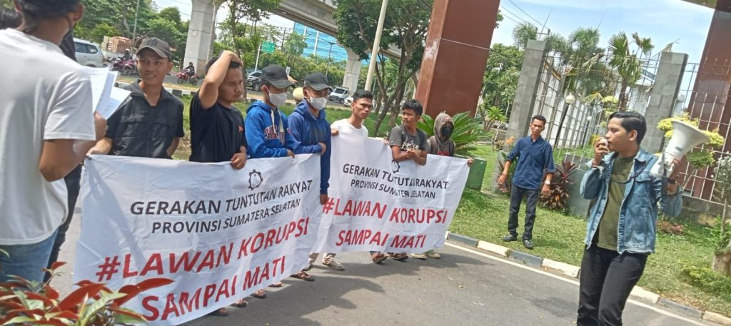 Mereka melakukan aksi demonstrasi di depan kantor Gubernur Sumatera Selatan meminta agar Pj Gubernur Sumatera Selatan untuk menindak tegas oknum pejabat di lingkungan Sumatera Selatan yang bertindak amoral.
