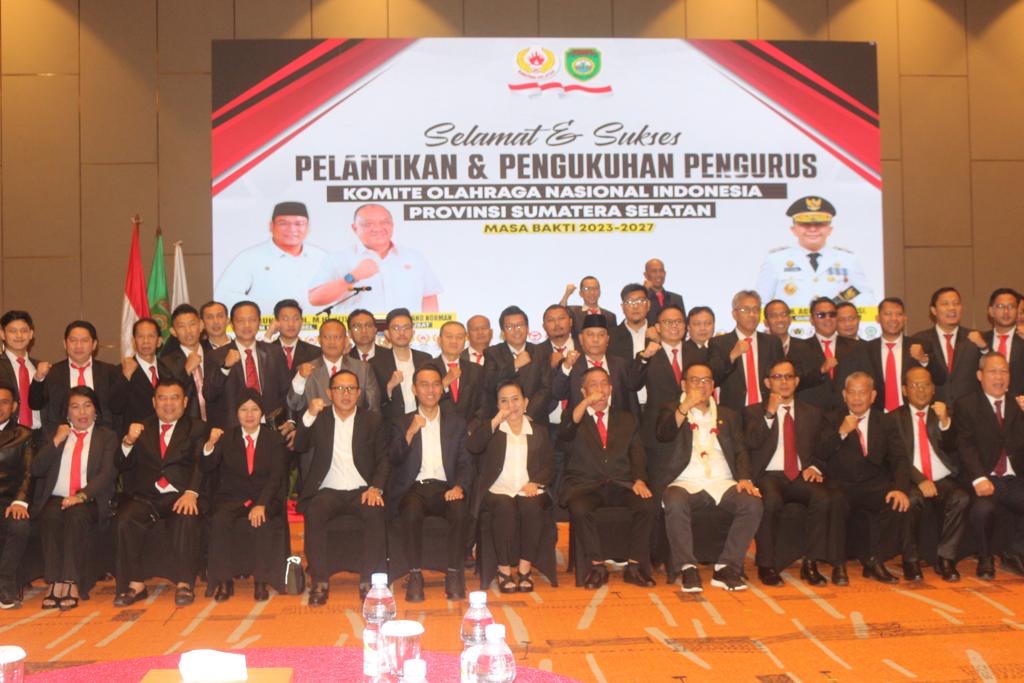 Bertempat di Ballroom Novotel puluhan pengurus Komite Olahraga Nasional (KONI) Sumsel periode 2023-2027 dibawah pimpinan Yulian Gunhar Resmi Dilantik Pj Gubernur Agus Fatoni.