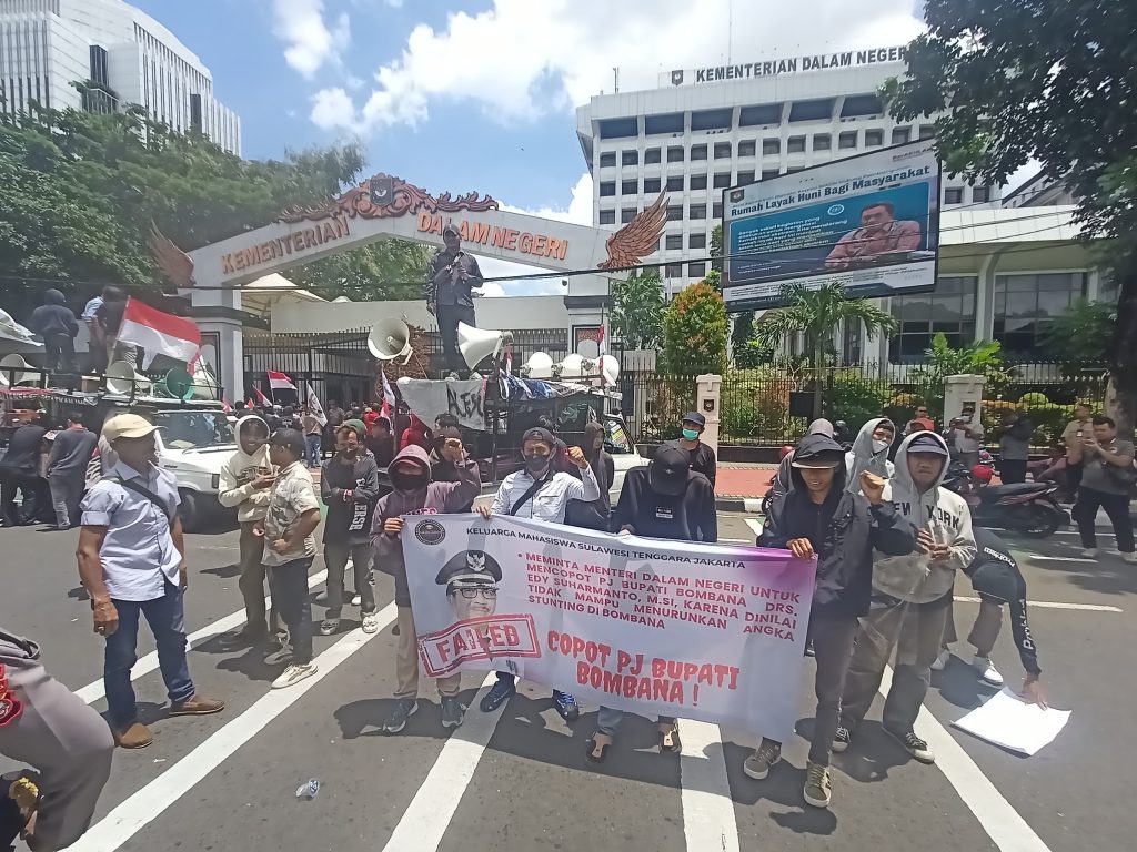 “Dalam waktu kurun tiga bulan ini Pj Bupati Bombana Edy Suharmanto tidak mampu penurunan angka stunting di Bombana, ini kemudian menjadi pertayaan dia bisa bekerja atau tidak ?”, ucap Akril saat demo di Kemendagri, Kamis, 7/3/24.