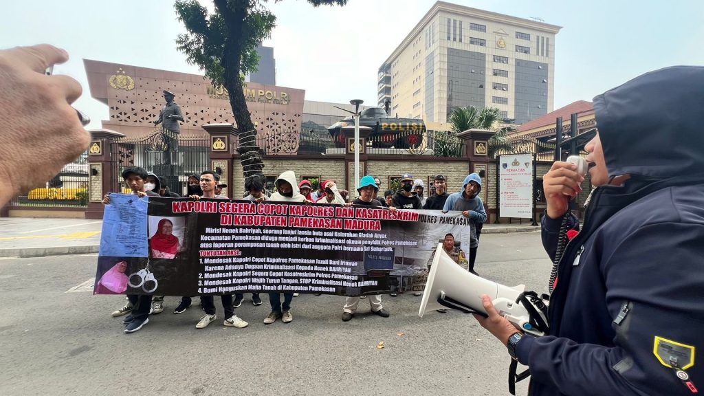 Sejumlah pemuda mengatasnamakan Pamekasan Progress mendatangi Markas Besar Polisi Republik Indonesia untuk meminta copot Kapolres dan Kasatreskrim Pamekasan karena terjadinya dugaan krimanalisasi terhadap seorang lansia Bahriyah yang dijadikan tersangka atas laporan perampasan tanah oleh istri dari anggota Polri bernama Sri Suhartatik.