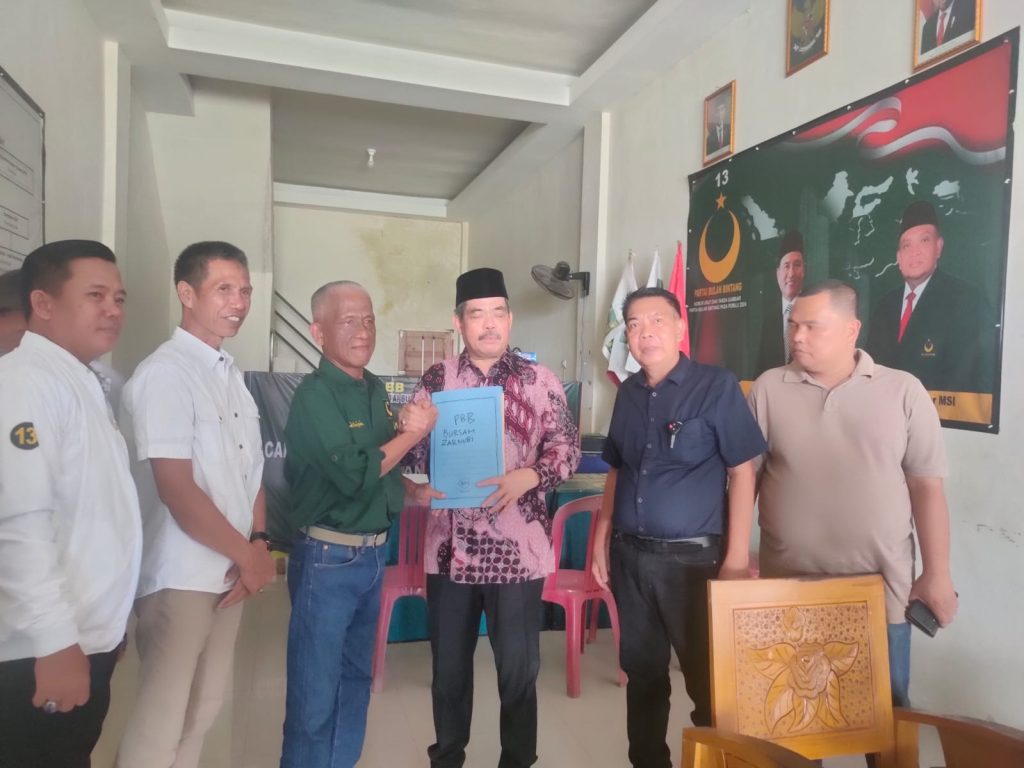 Lahat – Bakal Calon Bupati Kabupaten Lahat dengan slogan Sayangi Lahat Menata Kota Membangun Desa, Bursah Zarnubi (BZ) bersama rombongan, pada hari ini mengembalikan formulir pendaftaran bakal calon Bupati Lahat 2024-2029 ke DPC Partai Bulan Bintang (PBB) di jalan manggul Lahat, Senin, (13/05/24).