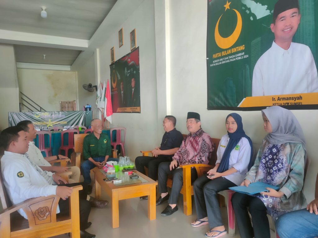 Hadirnya Bursah zarnubi bersama rombongan langsung disambut oleh Ketua DPC Partai Bulan Bintang Ismail Aripin, SH didampingi sekretaris, Aristoteles, S.Ag.