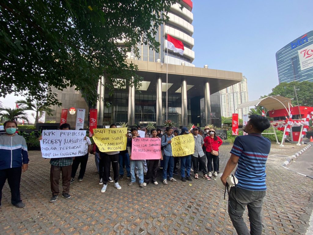 Sejumlah pemuda mengatasnamakan Aliansi Pergerakan Mahasiswa Indonesia (APMI) mendatangi Komisi Pemberantasan Korupsi (KPK) untuk meminta periksa mantan Wali Kota Medan Bobby Nasution karena diduga terlibat dalam kasus suap dan gratifikasi izin tambang yang menjerat mantan Gubernur Malut AGK.