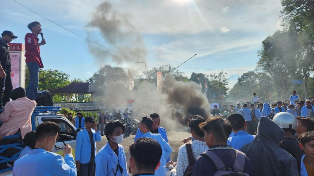 Ribuan mahasiswa dari berbagai kampus di Kota Palembang yang tergabung dalam Gerakan Sumsel Melawan melaksanakan Aksi Lanjutan yang berujung bakar Ban di Taman Simpang 5 Kantor DPRD Provinsi Sumatera Selatan.