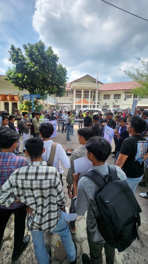 Sejumlah elemen Mahasiswa dan Pemuda yang tergabung dalam Aliansi Mahasiswa Pemuda Sumatera Selatan melakukan aksi unjuk rasa terkait tindak pidana korupsi pengerjaan Retrofit Sistem Sootblowing pembangkit listrik tenaga UAP (PLTU) Bukit Asam (PTBA) PLN Unit Induk Pembangkitan Sumatera Bagian Selatan di Pengadilan Negeri Kota Palembang (12-02-2025).