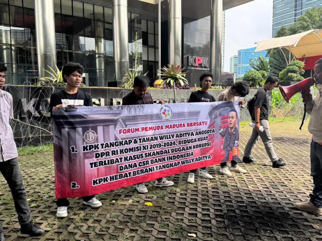 Forum Pemuda Madura Bersatu mendatangi gedung Merah Putih Komisi Pemberantasan Korupsi (KPK) melakukan Aksi Demontrasi menyikapi Kasus dugaan korupsi dana CSR Bank Indonesia yang merugikan negara triliunan rupiah