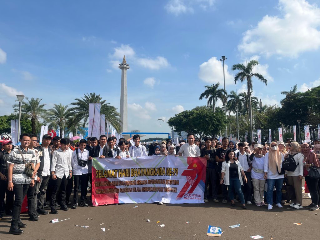 Jakarta – Sejumlah jajaran anggota Polres Pasuruan bersama masyarakat ikut meriahkan perayaan puncak peringatan Hari Bhayangkara ke-79 di kawasan Monumen Nasional (Monas), Jakarta Pusat, pada Selasa 1 Juli 2025.