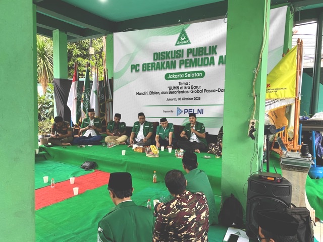 Jakarta, 08 Oktober 2025 – Gerakan Pemuda Ansor (GP Ansor) Cabang Jakarta Selatan sukses menyelenggarakan diskusi publik bertajuk “BUMN di Era Baru: Mandiri, Efisien, dan Berorientasi Global Pasca-Danantara” di Gedung Serbaguna GP Ansor Jakarta Selatan. Acara yang dihadiri lebih dari 70 peserta dari Angggota GP Ansor se Jakarta Selatan dan Aktivis ini bertujuan untuk membahas transformasi Badan Usaha Milik Negara (BUMN) di tengah dinamika ekonomi pasca-krisis global yang disebut sebagai “Danantara”. Diskusi ini menjadi wadah penting bagi generasi muda untuk berkontribusi dalam pembangunan nasional yang berkelanjutan.