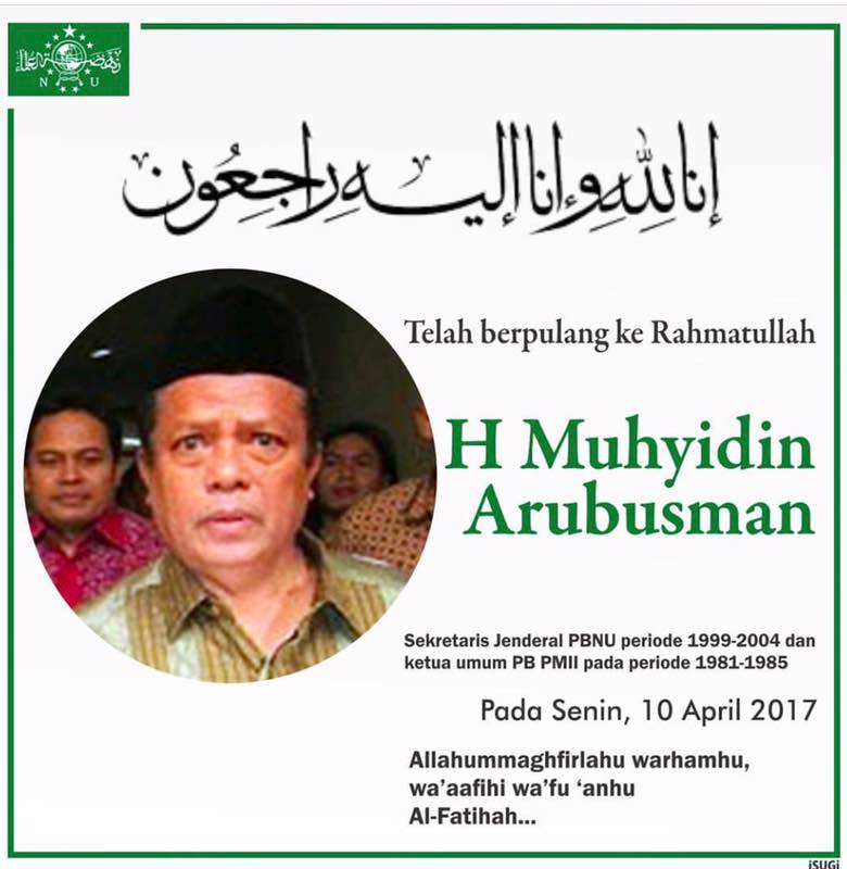 VISIONER.ID, JAKARTA: Innalillahiwainnailaihirajiun, kabar duka dari keluarga besar Nahdatul Ulama, mantan Sekretaris Jenderal PBNU periode 1999-2004, KH Muhyidin Arubusman meninggal dunia di Rumah Sakit Tebet, Jakarta pada Senin (10/4) malam. Almarhum meninggal pada usia 66 tahun.