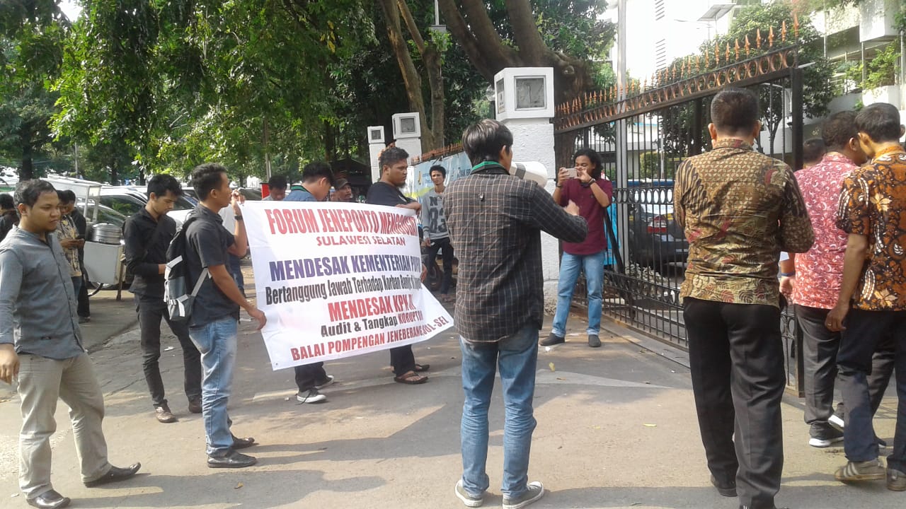 Visioner.id, Jakarta – Sejumlah organisasi mahasiswa dan pemuda yang tergabung dalam FORUM JENEPONTO MENGGUGAT melakukan aksi unjukrasa di Kementerian Pekerjaan Umum & Perumahan Rakyat (PUPR) dan Komisi Pemberantasan Korupsi Republik Indonesia (KPK RI) Pada hari Jumat, (20/03/2019).