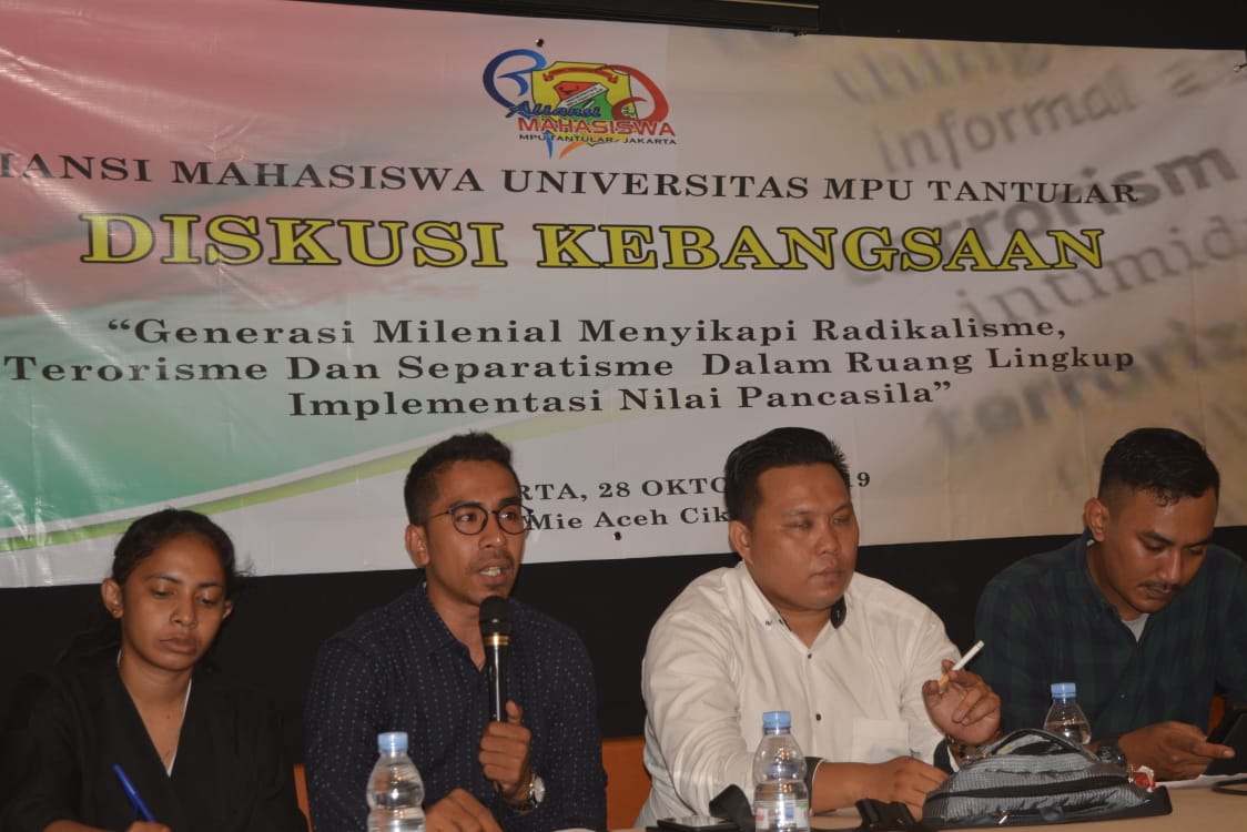 JAKARTA – Aliansi Mahasiswa MPU Tantular menggelar seminar kebangsaan dengan bertemakan Generasi Milenial Menyikapi Radikalisme, Terorisme Dan Separatisme Dalam Ruang Lingkup Implementasi Nilai Pancasila”.