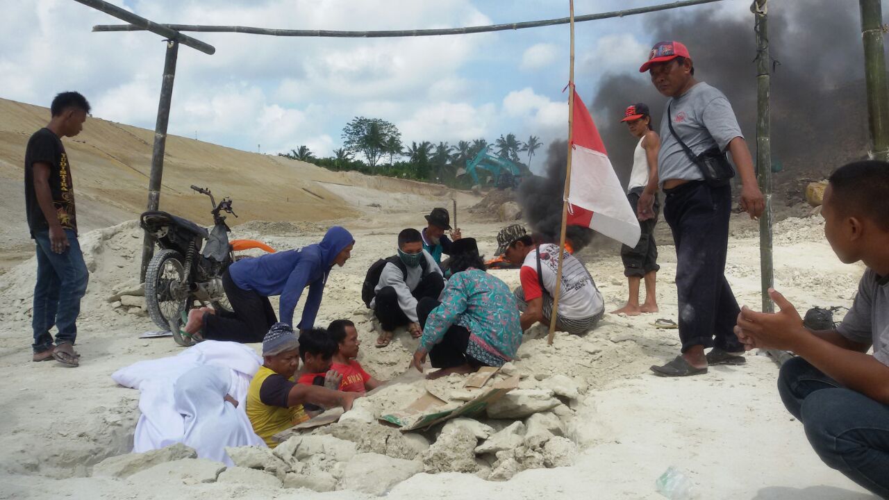 Mereka Samin (32 tahun), Indrikah Sahmin (38 tahun), Juanda (70 tahun) dan Dedi (19 tahun) Melakukan protes dengan aksi kubur diri di lokasi Jalan Tol Trans Sumatra (JTTS), Lampung, Rabu (2/6)