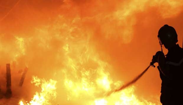 Berdasarkan pantauan di lapangan, petugas PLN terlihat sedang memperbaiki aliran listrik di sekitar lokasi kebakaran untuk menghindari kerusakan yang lebih parah. (Erry Dwi / AP)