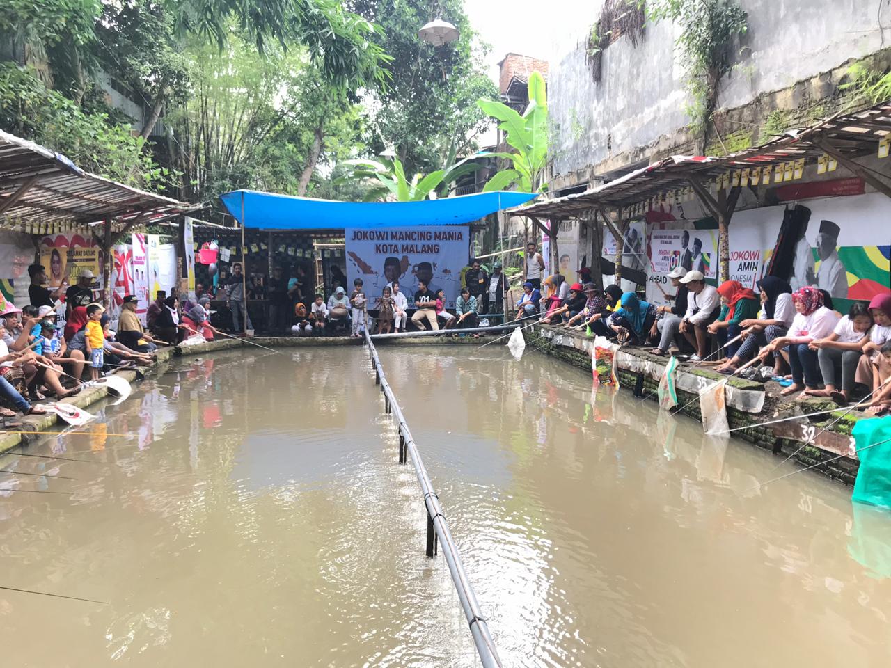 Visioner.id, Malang – Ratusan warga mengikuti lomba mancing gratis di saluran irigasi Kelurahan Tlogomas, Kecamatan Lowokwaru, Kota Malang, Minggu (24/3/2019). Acara ini digelar oleh Relawan Central Mahasiswa Pro Jokowi Jawa Timur.